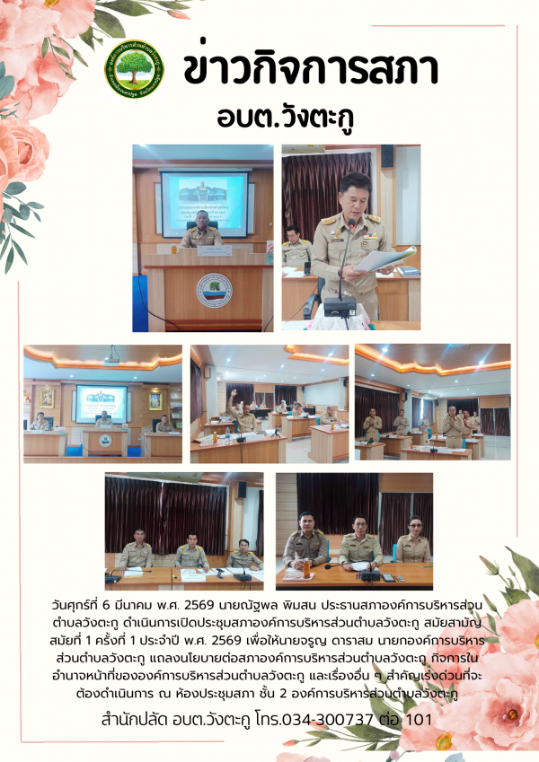 การเปิดประชุมสภาองค์การบริหารส่วนตำบลวังตะกู สมัยสามัญ สมัยที่ 1 ครั้งที่ 1 ประจำปี พ.ศ. 2569