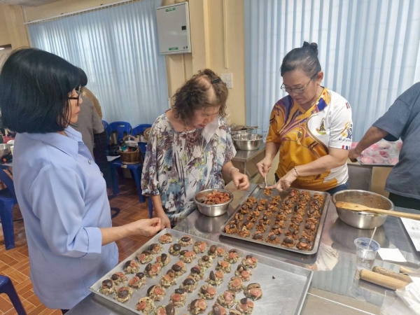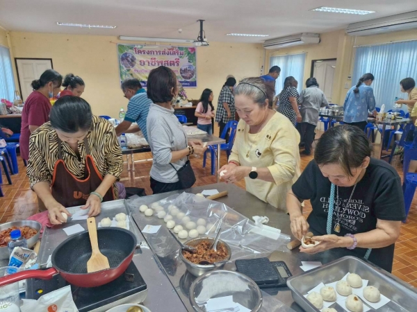 - การฝึกอาชีพภาคปฏิบัติ การทำซาลาเปาไส้เค็ม และไส้หวาน เริ่มขั้นตอนตั้งแต่การทำแป้งซาลาเปา การทำไส้หมูสับ หมูแดง ไส้ครีม และไส้ถั่ว จนถึงเสร็จสิ้นกระบวนการทำ